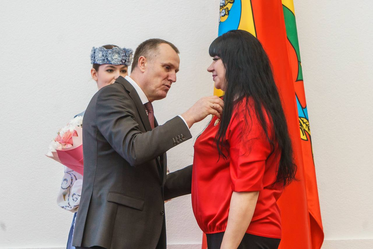 Почетную награду из рук губернатора получила Лилия Сморчёк- супруга нашего сотрудника, старшего мастера МСЦ№1 МСУ№2, Сморчка Максима Борисовича. Семья воспитывает 5 дочерей.