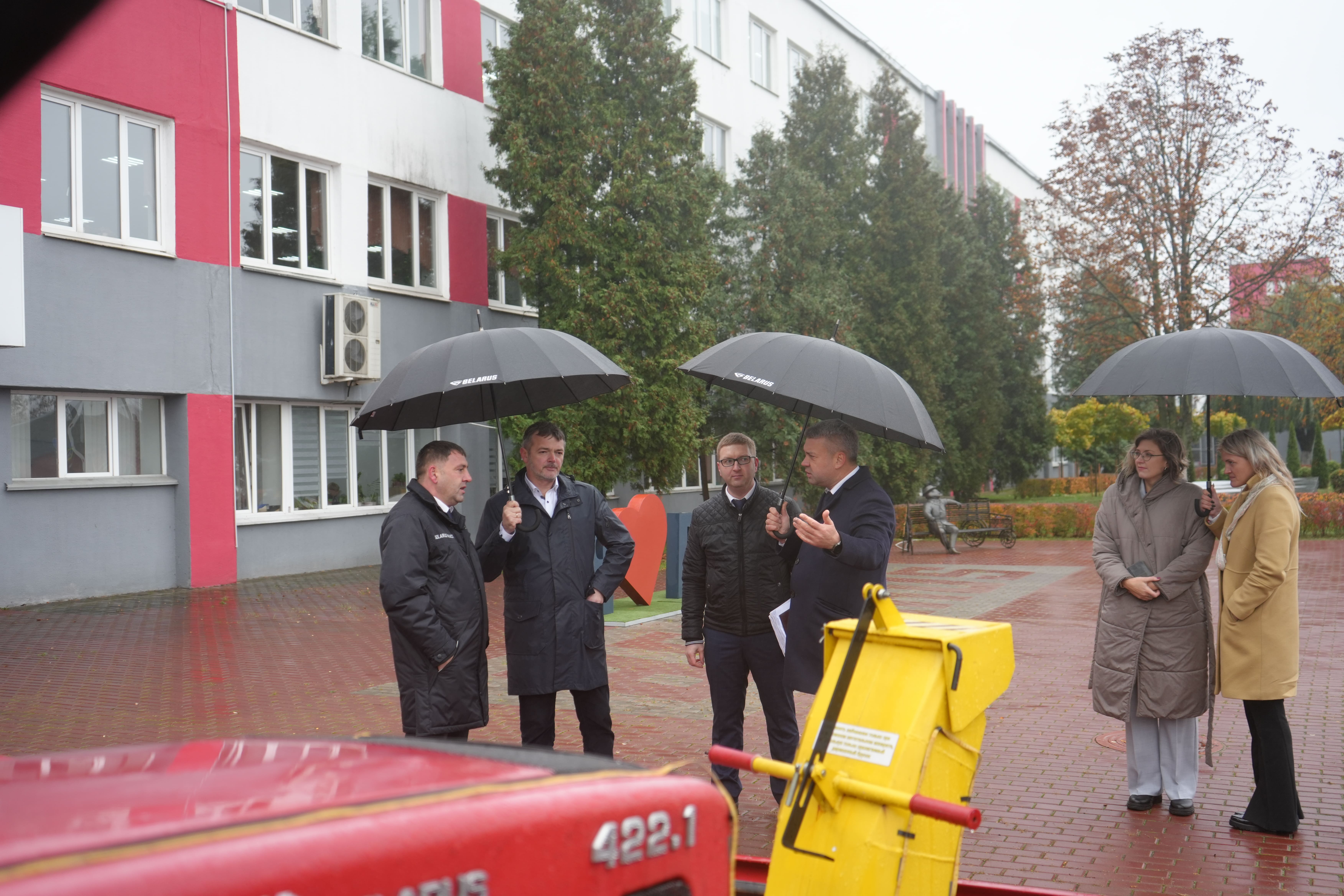 Гостям провели подробную экскурсию по заводу, продемонстрировав цеха основного производства, конвейерную сборку тракторов «BELARUS», обкаточные стенды, продемонстрировали широкий ассортимент навесного и прицепного оборудования, а также колес дисковых.