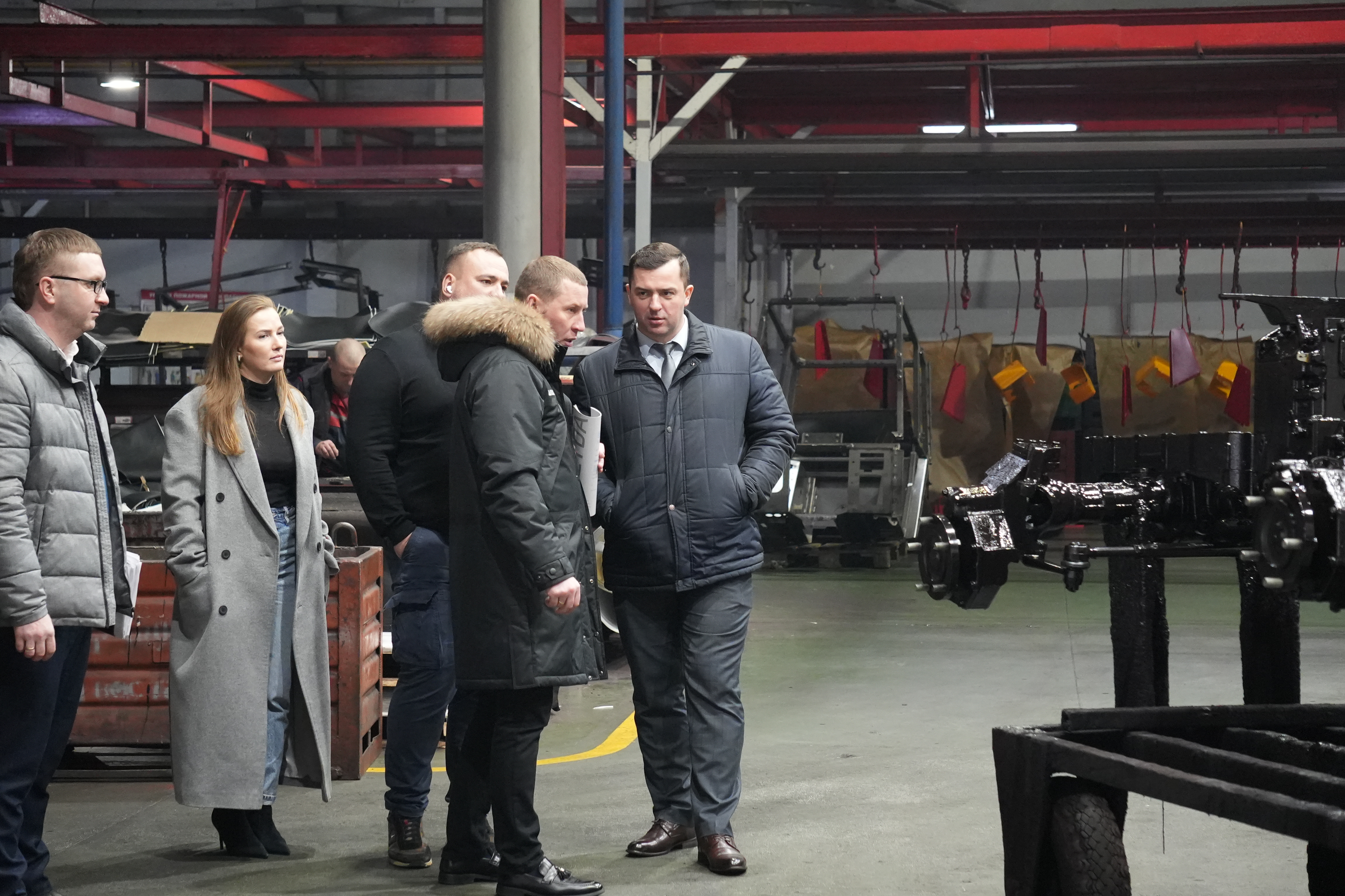 Представителям делегации провели подробную экскурсию по заводу, продемонстрировав цеха основного производства, конвейерную сборку тракторов «BELARUS», обкаточные стенды, продемонстрировали широкий ассортимент навесного и прицепного оборудования, а также колес дисковых.
