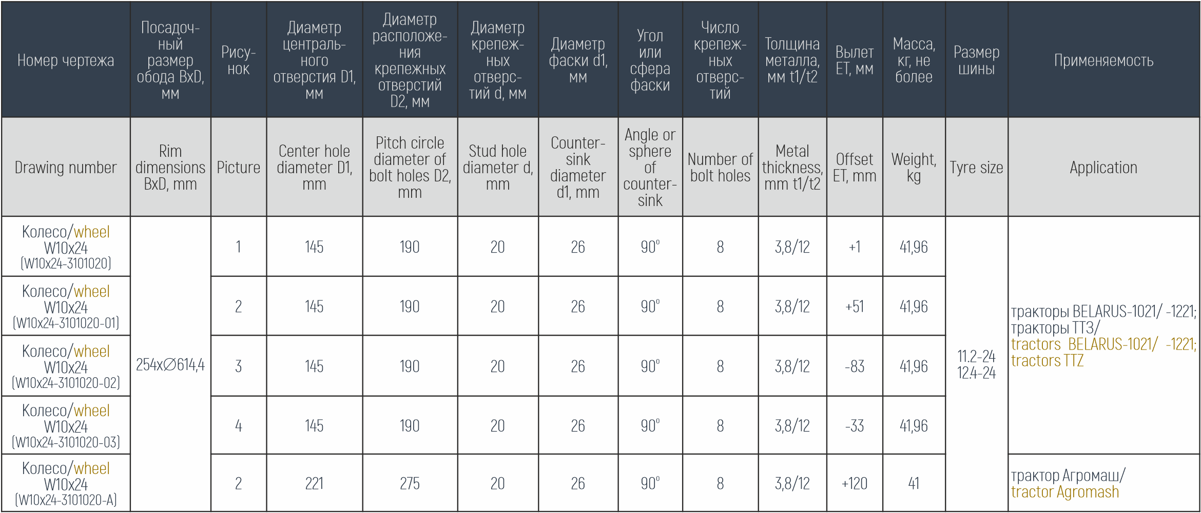 Колесо дисковое с переменным вылетом W10x24