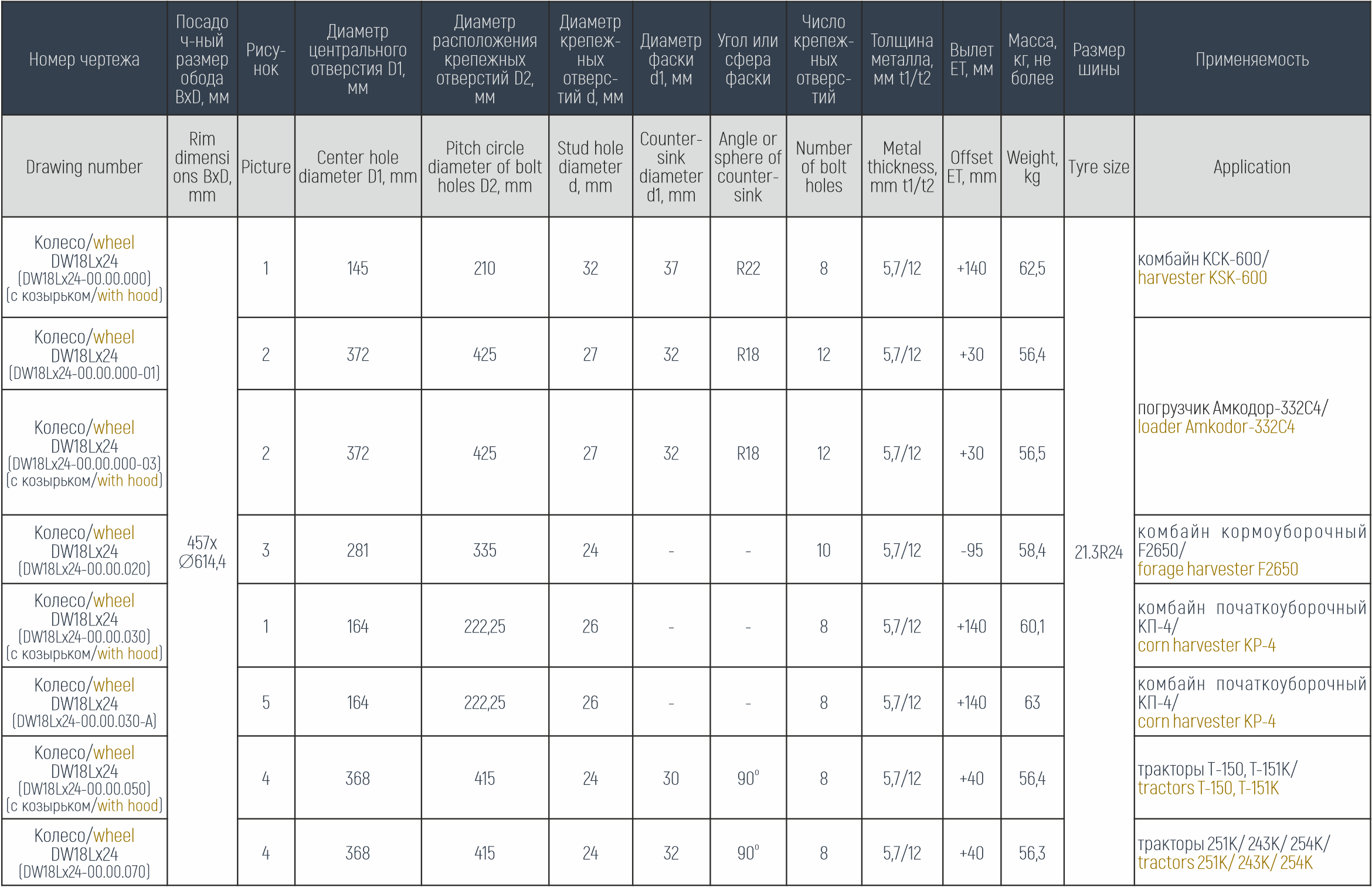 Колесо с постоянным вылетом DW18Lx24